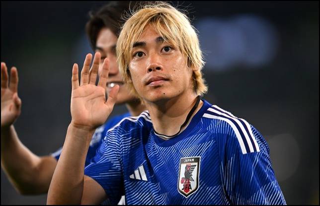 サッカーの日本代表の伊東純也(いとうじゅんや)選手。